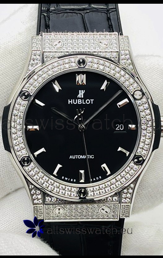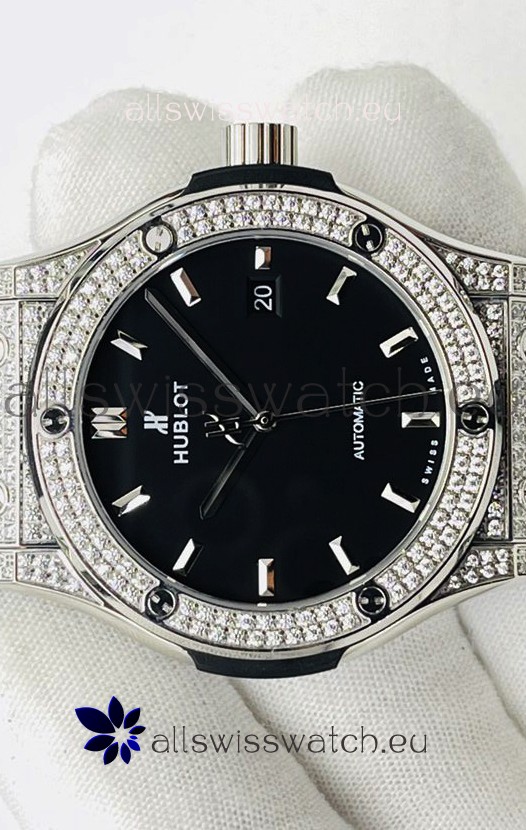 Hublot Classic Fusion Stainless Steel Diamonds Black Dial Swiss Replica Watch 1:1 Mirror Quality