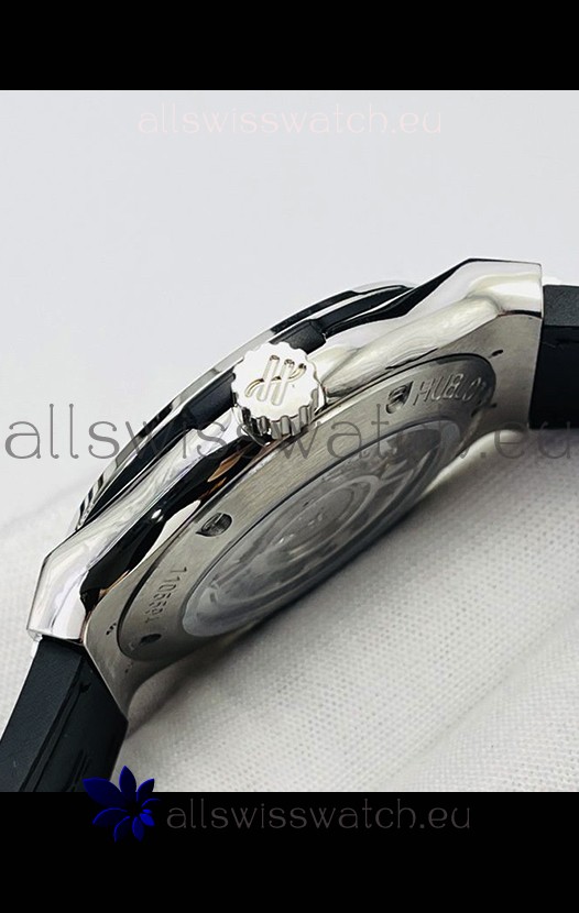 Genuine Swiss ETA2836-2 Movement with very smooth sweeping seconds hands movement. Machinery Alignment exactly as per the Original HUB1110 Movement.