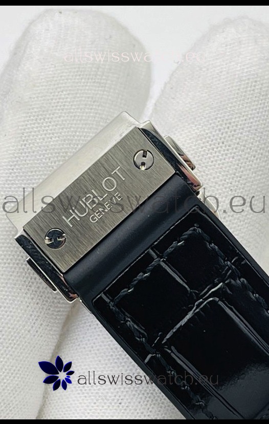 Rubber Clad Leather Strap with Steel Folding Clasp complete with Hublot Markings and Engravings.