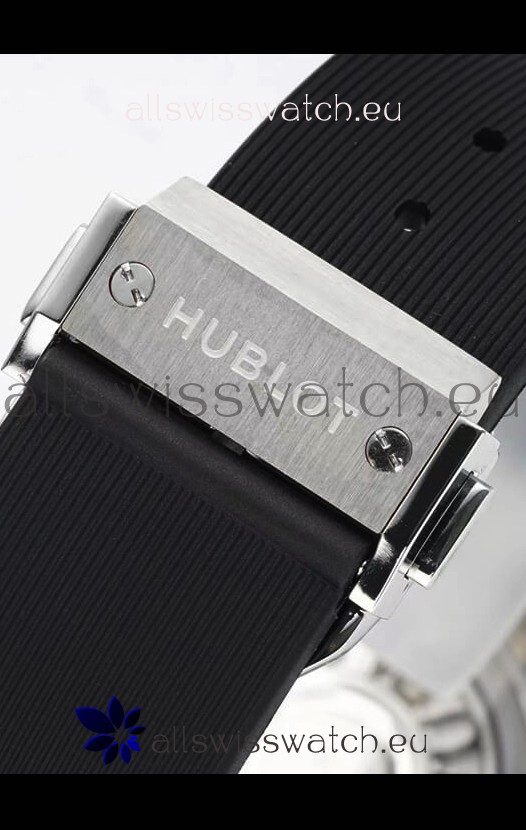 Rubber Strap with Steel Folding Clasp complete with Hublot Markings and Engravings.