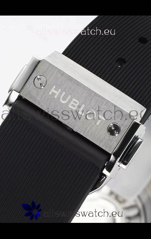Rubber Strap with Steel Folding Clasp complete with Hublot Markings and Engravings.