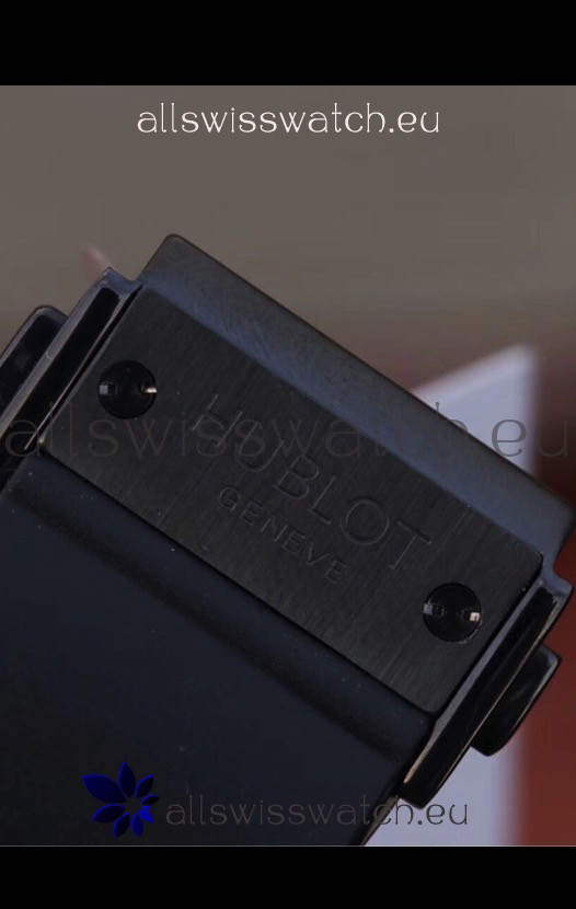 Genuine Black Rubber Strap and PVD Coated Folding clasp with Hublot Markings and Engravings