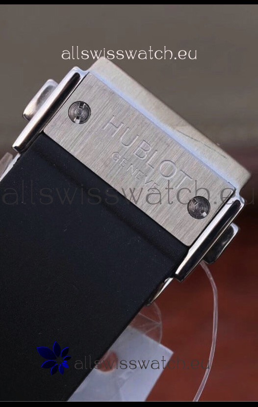 Genuine Black Rubber Strap and PVD Coated Folding clasp with Hublot Markings and Engravings