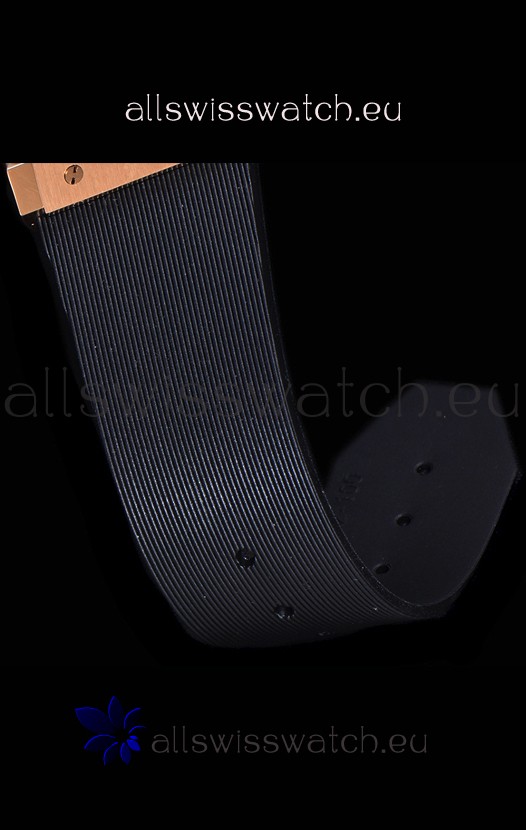 Genuine Black Rubber Strap and PVD Coated Folding clasp with Hublot Markings and Engravings