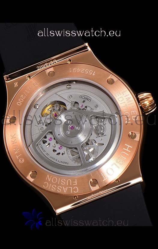 18K Rose Gold Plating on 904L Steel Casing complete with HUBLOT Markings and engravings
