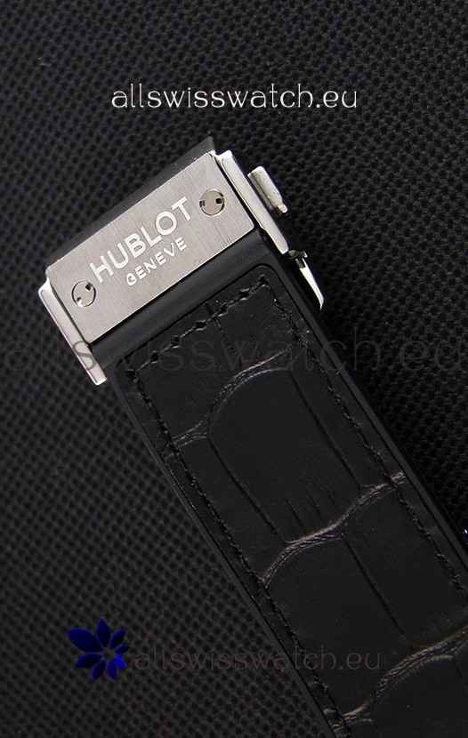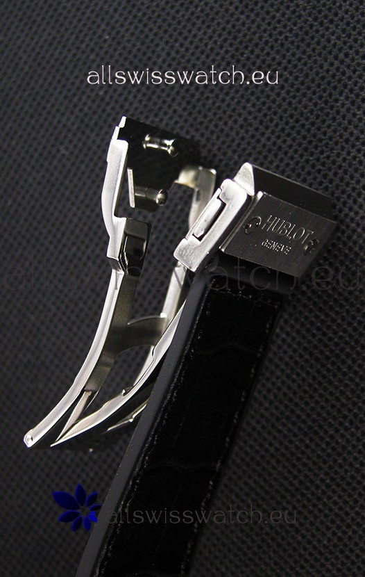 Rubber Clad Leather Strap with Steel Folding Clasp complete with Hublot Markings and Engravings.