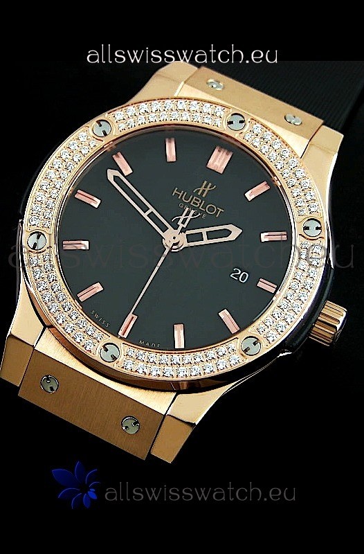 Hublot Fusion Bang Swiss Watch in Rose Gold Case Diamonds Bezel