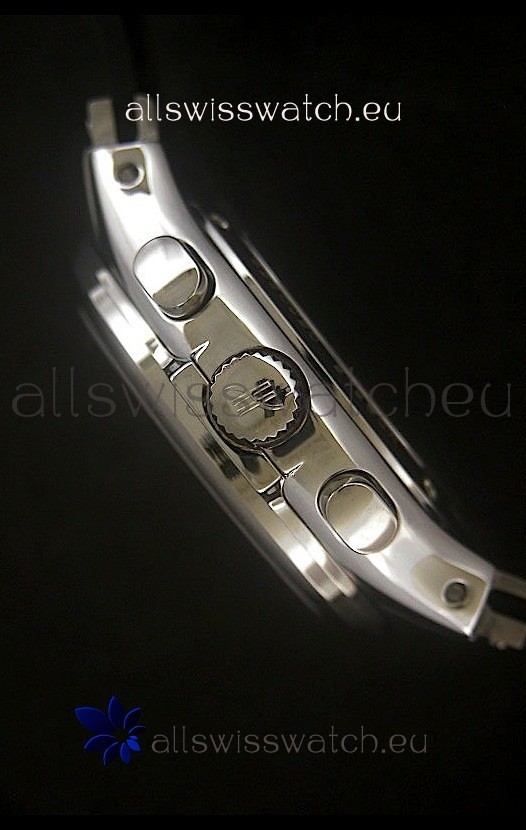 Function: Hour, Minute, Second, Silver Sticks Markers Date Display at 4:30 and Full Functional Chronograph
