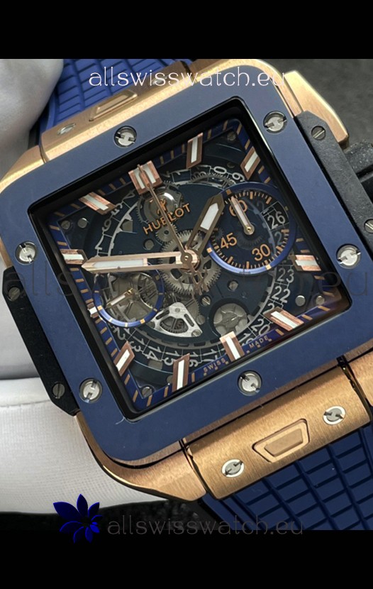 Hublot Square Bang Unico Rose Gold Blue Ceramic Chronograph Watch 1:1 Mirror Replica