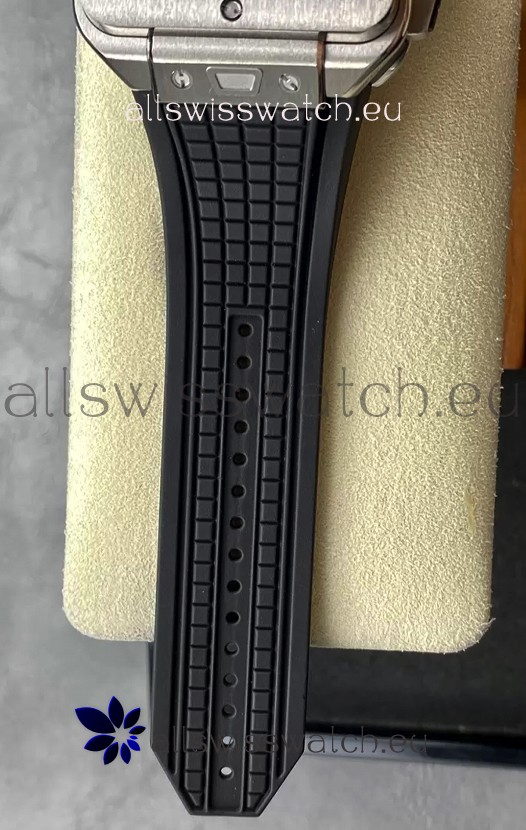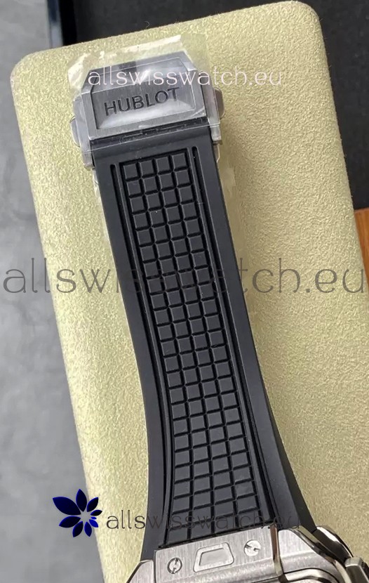 Rubber Strap with Steel Folding Clasp complete with Hublot Markings and Engravings.