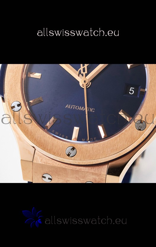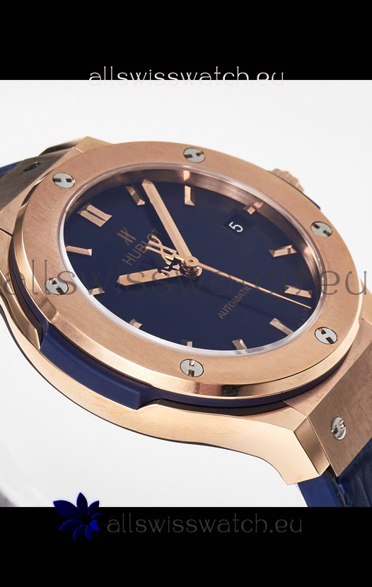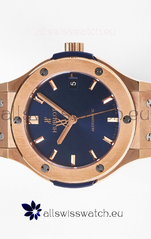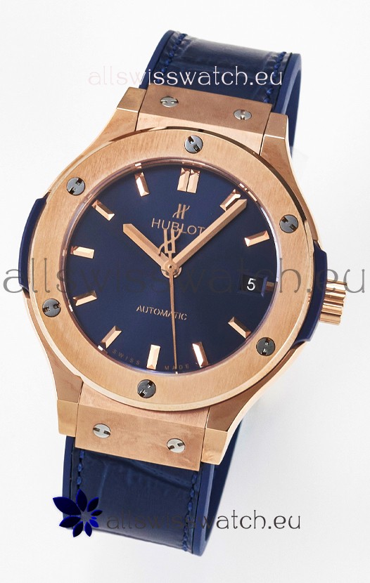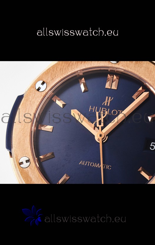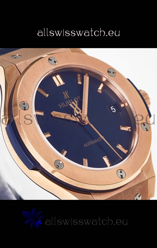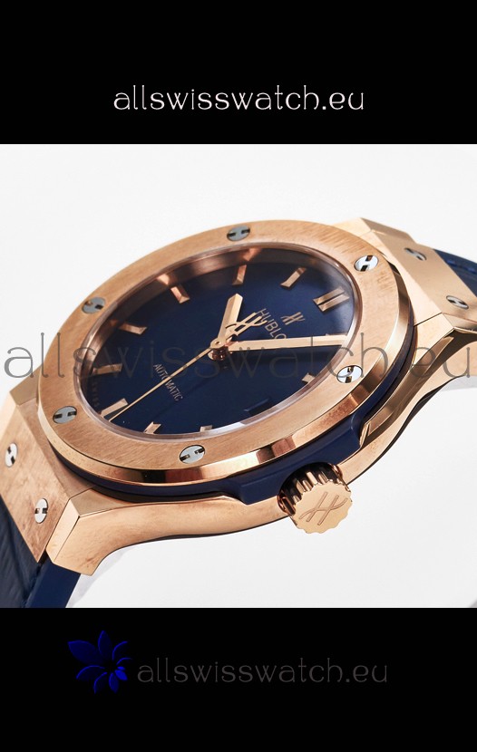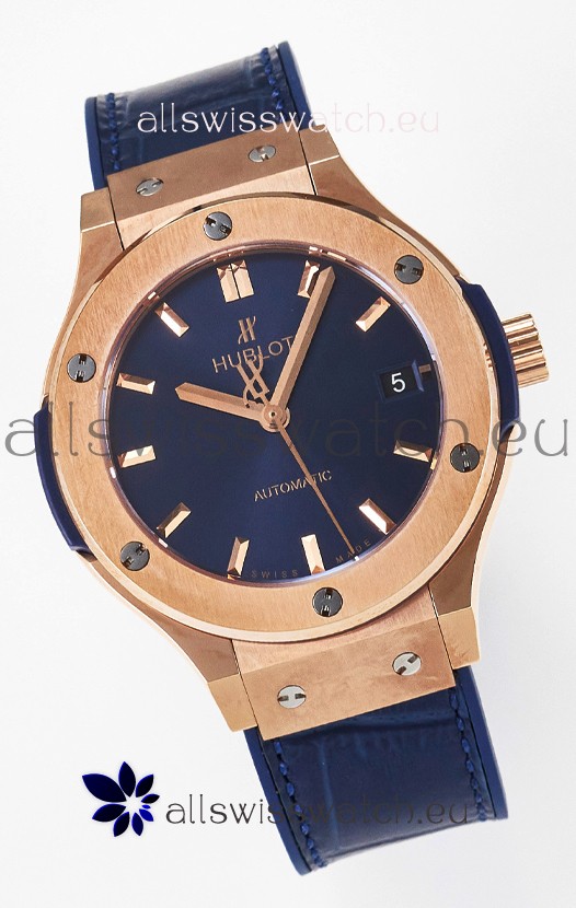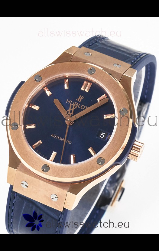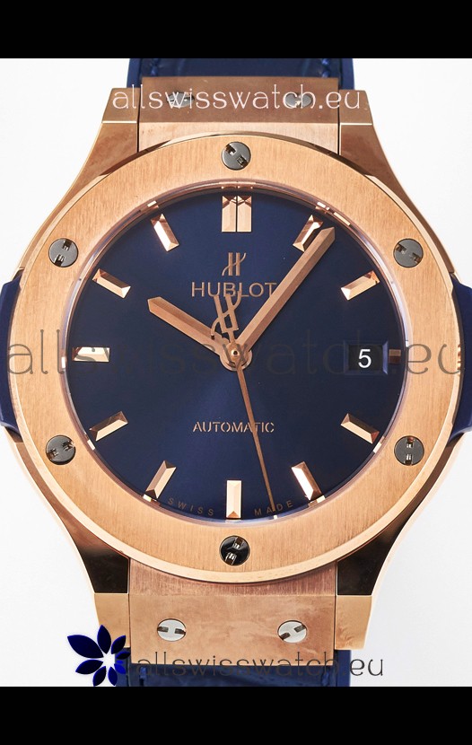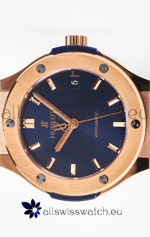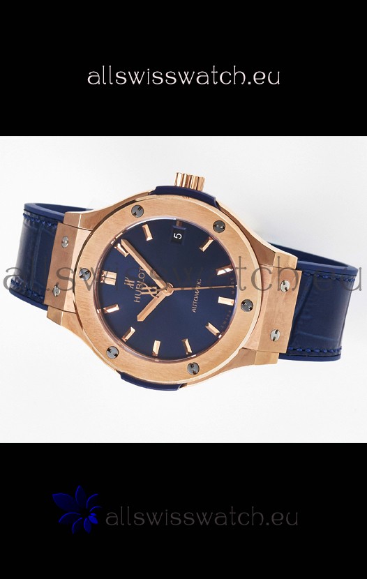 Hublot Super Clone Classic Fusion Rose Gold 38MM 1:1 Mirror Replica Watch Blue Dial