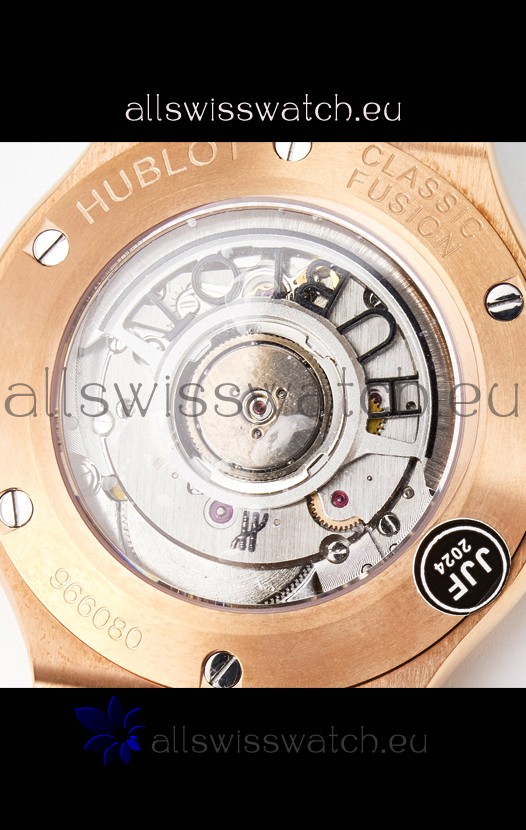 18K Rose Gold Plating on 904L Steel Casing Complete with all Hublot Markings and Engravings