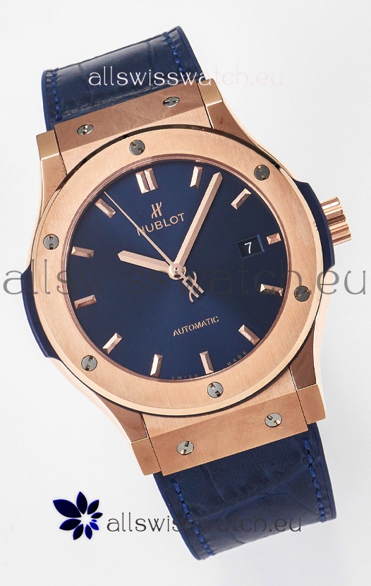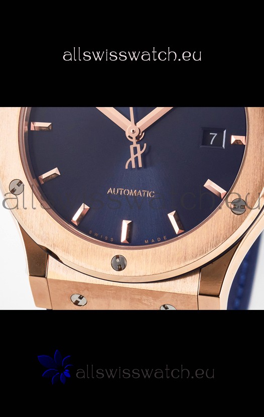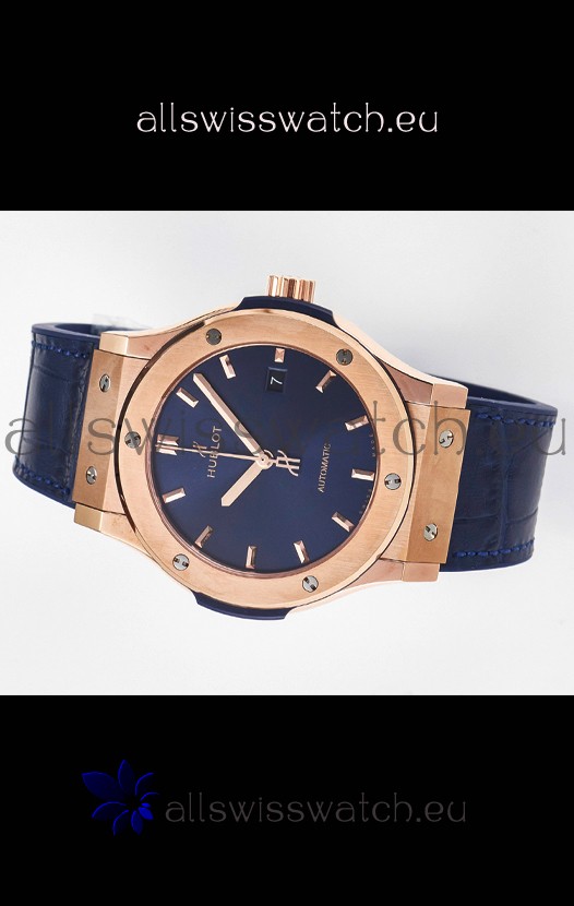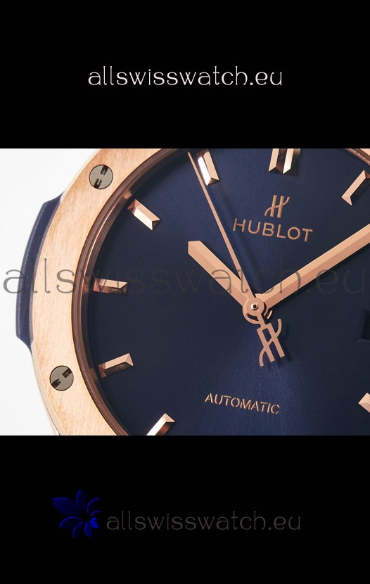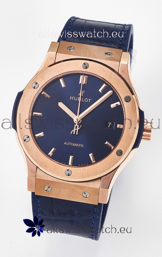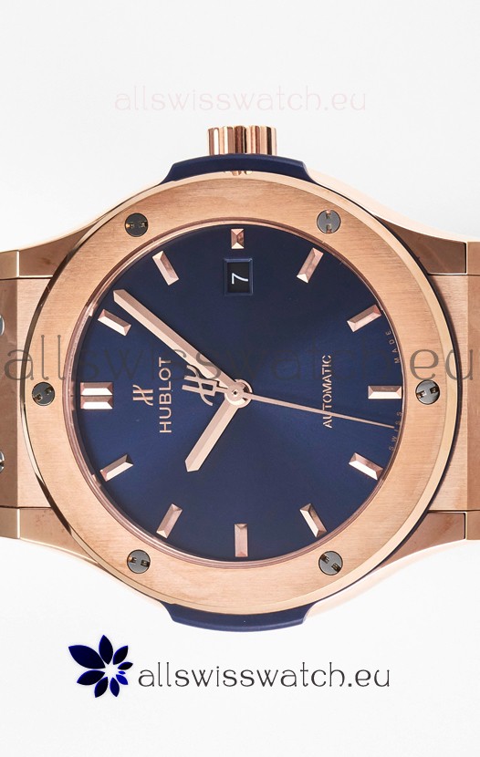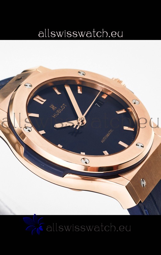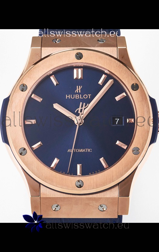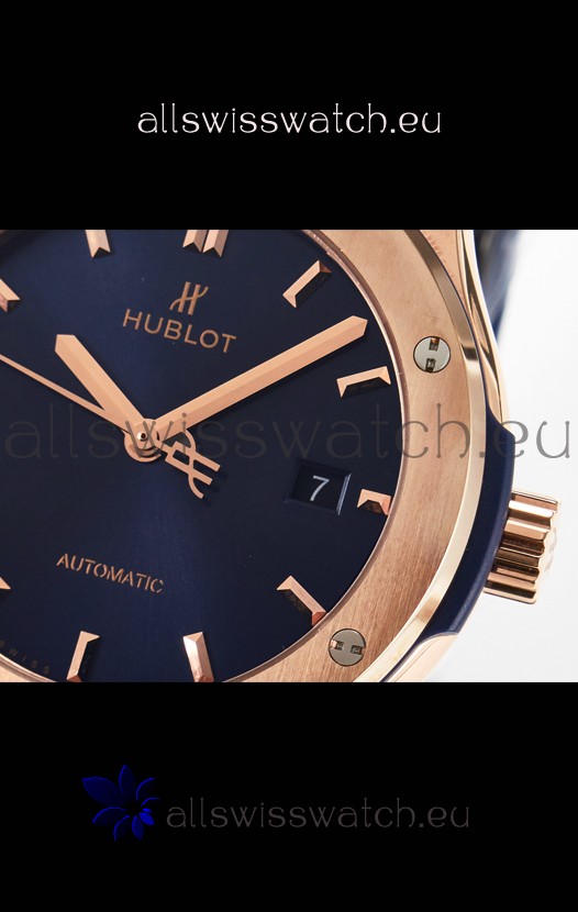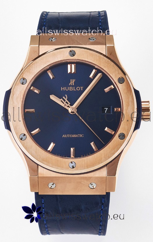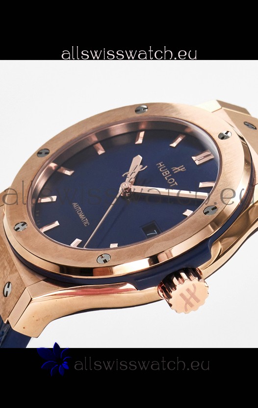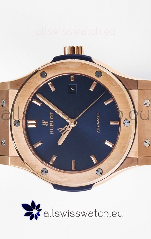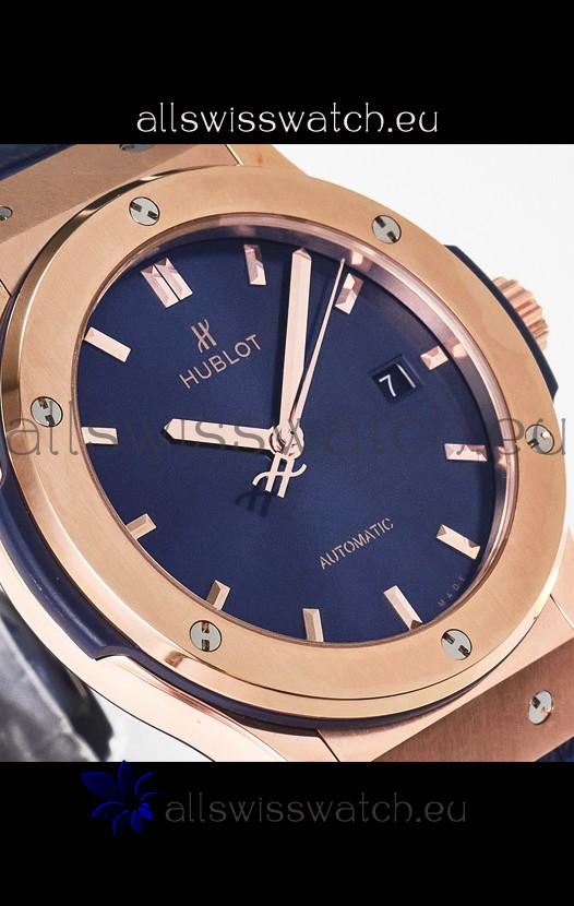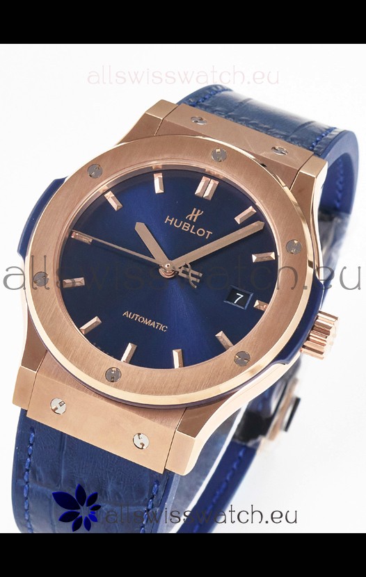 Hublot Super Clone Classic Fusion Rose Gold 42MM 1:1 Mirror Replica Watch Blue Dial