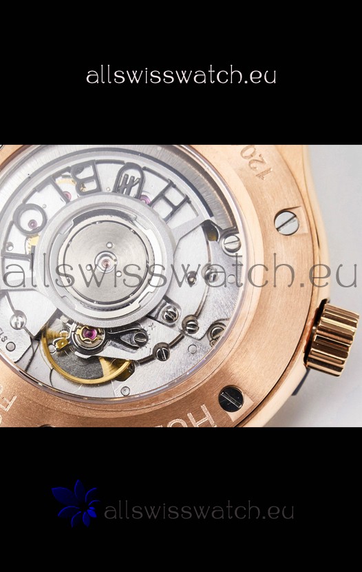 18K Rose Gold Plating on 904L Steel Casing Complete with all Hublot Markings and Engravings