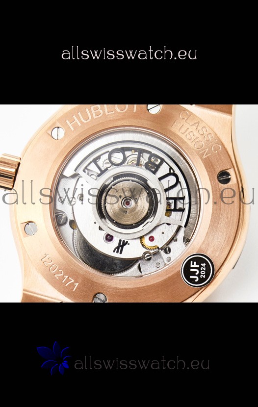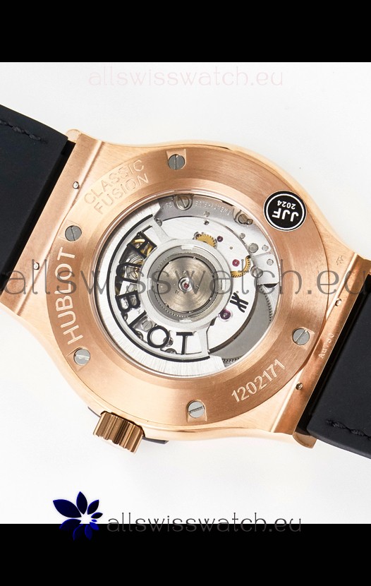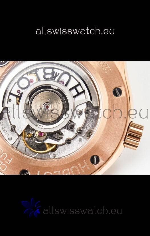 18K Rose Gold Plating on 904L Steel Casing Complete with all Hublot Markings and Engravings