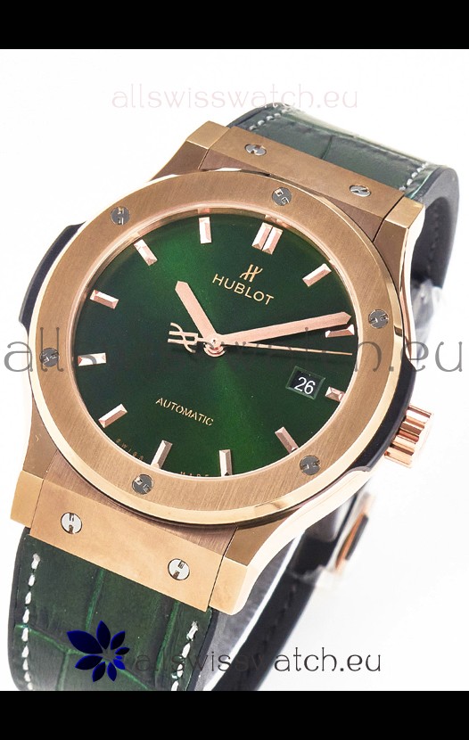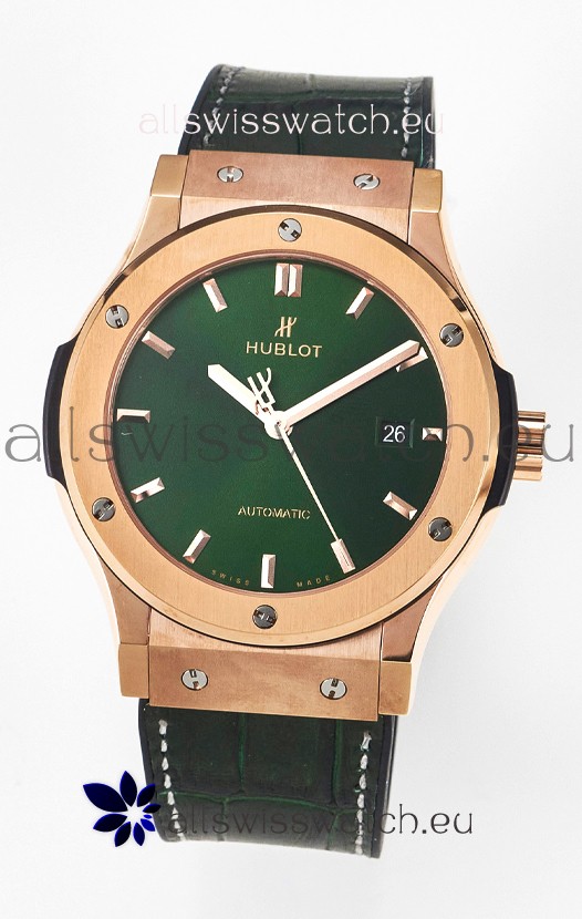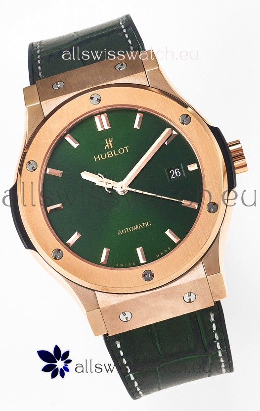 Hublot Super Clone Classic Fusion Rose Gold 42MM 1:1 Mirror Replica Watch Green Dial