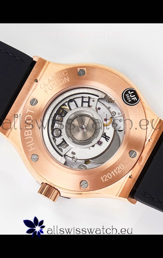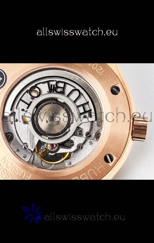 18K Rose Gold Plating on 904L Steel Casing Complete with all Hublot Markings and Engravings