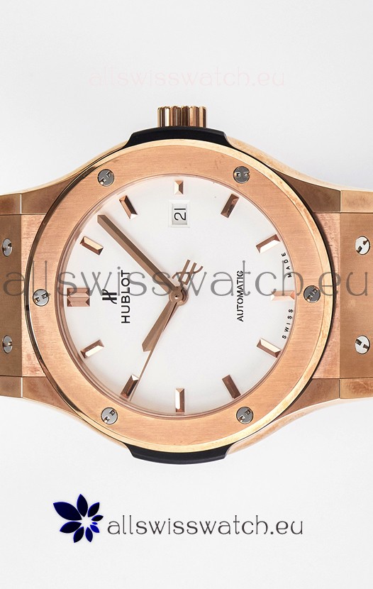 Hublot Super Clone Classic Fusion Rose Gold 42MM 1:1 Mirror Replica Watch White Dial