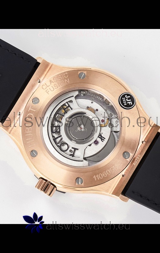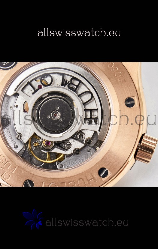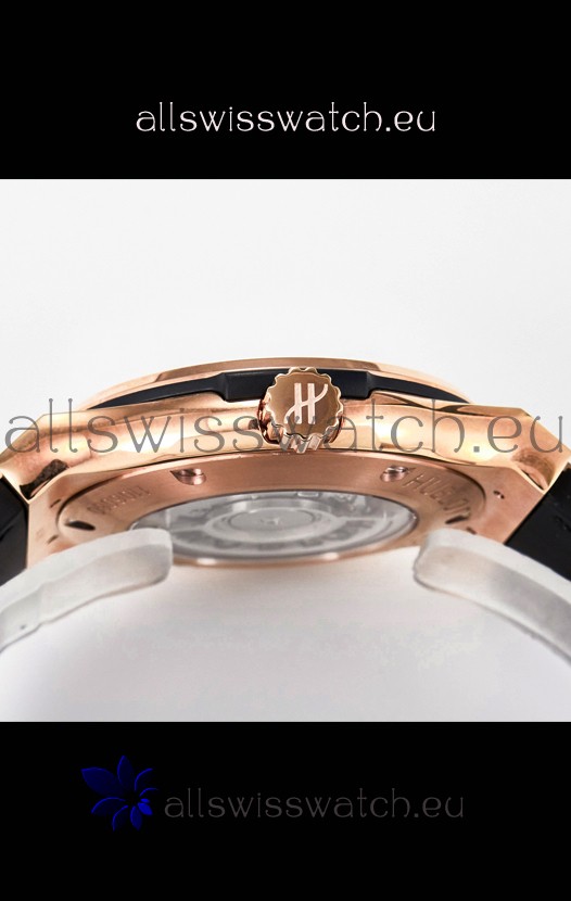 18K Rose Gold Plating on 904L Steel Casing Complete with all Hublot Markings and Engravings