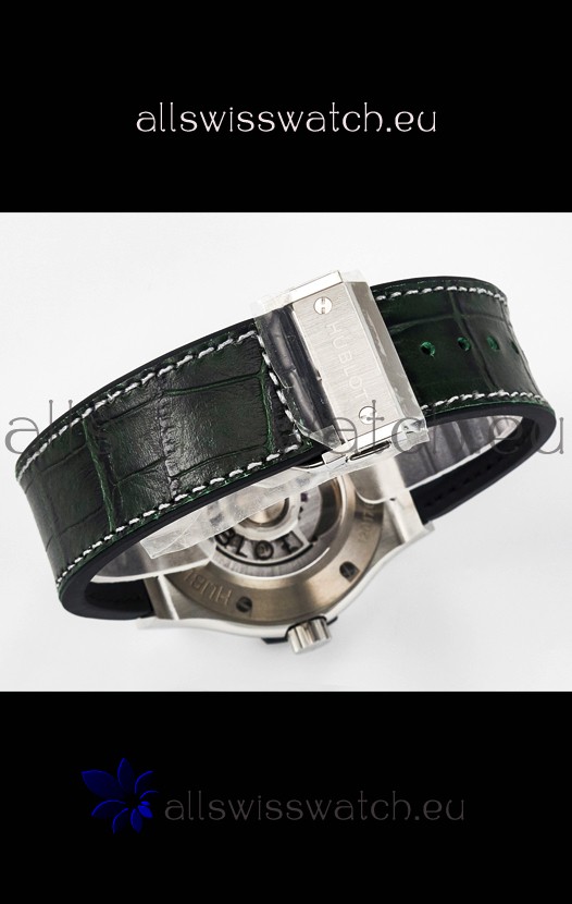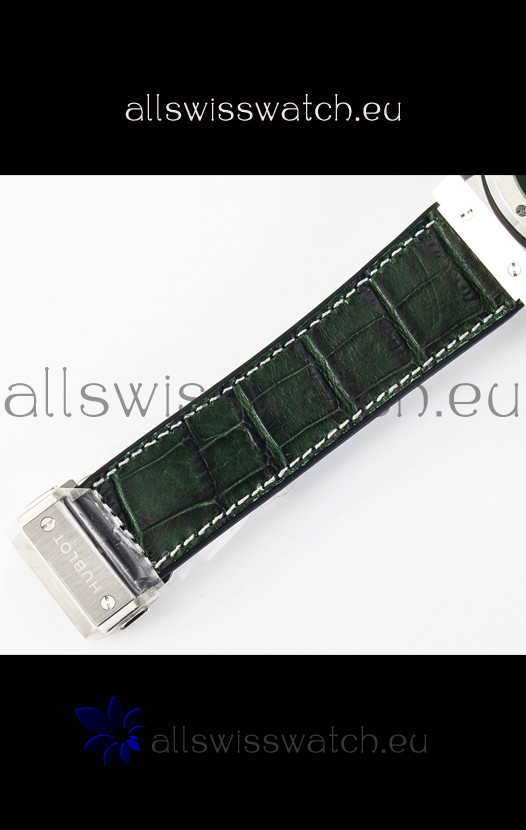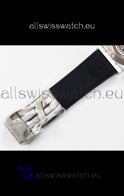 Leather Gummy Strap with Steel Folding Clasp complete with Hublot Markings and Engravings.