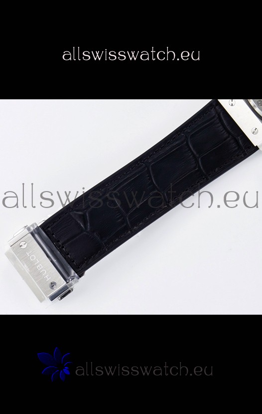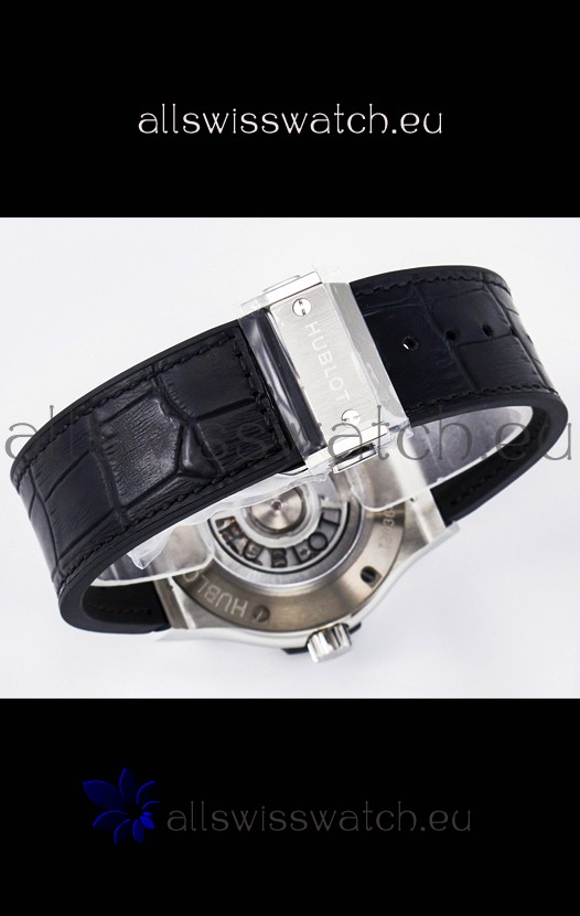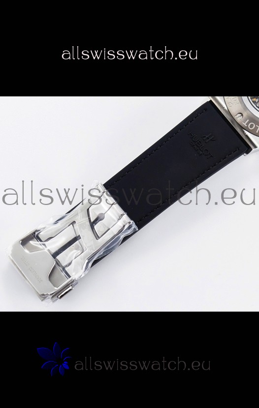 Leather Gummy Strap with Steel Folding Clasp complete with Hublot Markings and Engravings.