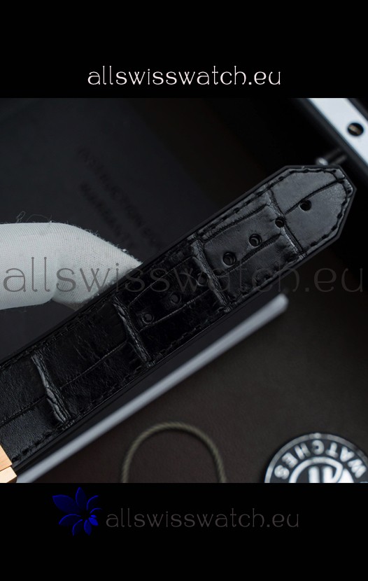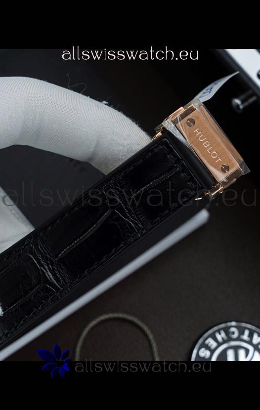 Crocodile Leather Strap with Rose Gold Folding Clasp complete with Hublot Markings and Engravings.