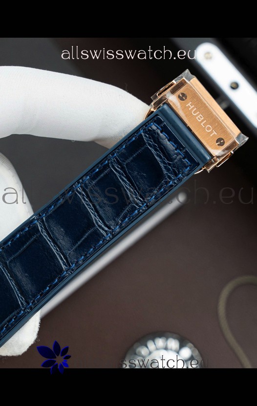 Crocodile Leather Strap with Rose Gold Folding Clasp complete with Hublot Markings and Engravings.