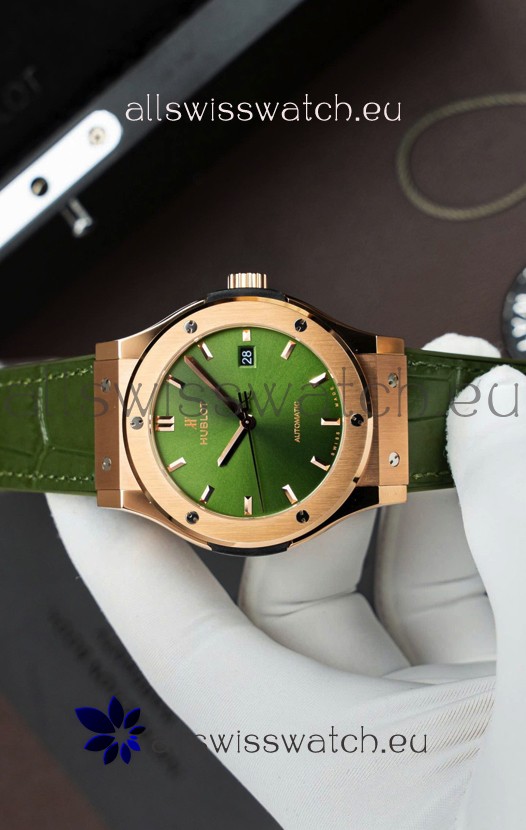Hublot Super Clone Classic Fusion Rose Gold Green Dial 42MM Watch