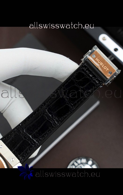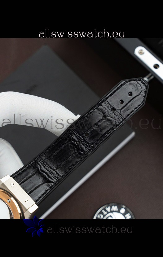 Genuine Crocodile Leather Strap with Rose Gold Folding Clasp complete with Hublot Markings and Engravings.