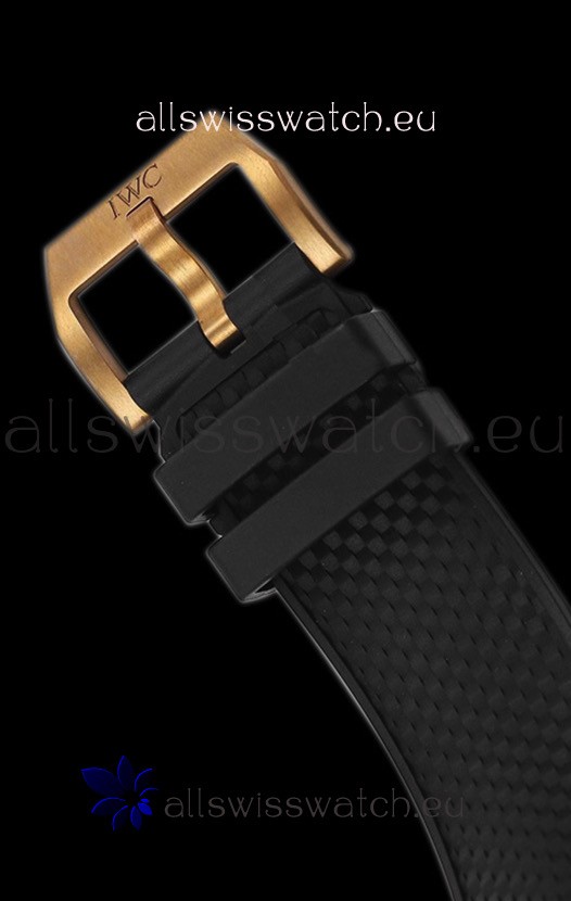 Black Rubber Clad Leather Strap with Stainless Steel Tang Buckle complete with IWC Markings and Engravings. Quick Bracelet change System
