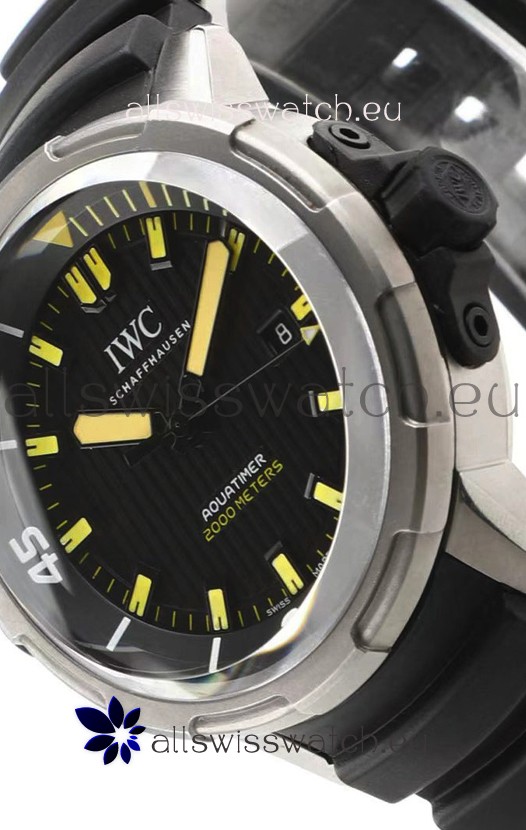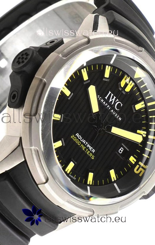 IWC Aquatimer IW358001 1:1 Titanium Mirror Swiss Replica Watch in Black Dial Rubber Strap