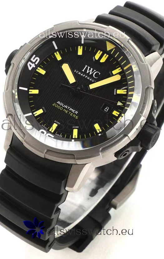 You're reviewing: IWC Aquatimer IW358001 1:1 Titanium Mirror Swiss Replica Watch in Black Dial Rubber Strap