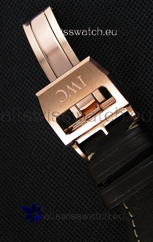 Genuine Black Leather Strap with Pink Gold Plated Clasp complete with IWC markings and Engravings.