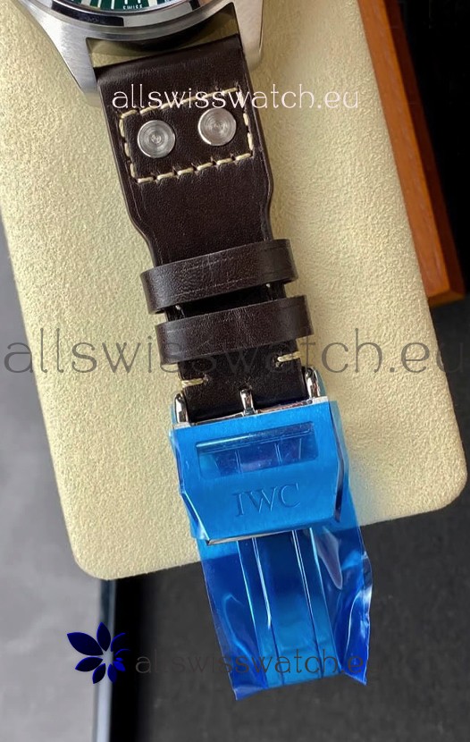 High Quality Leather Strap with Stainless Steel Clasps complete with IWC Markings and Engravings