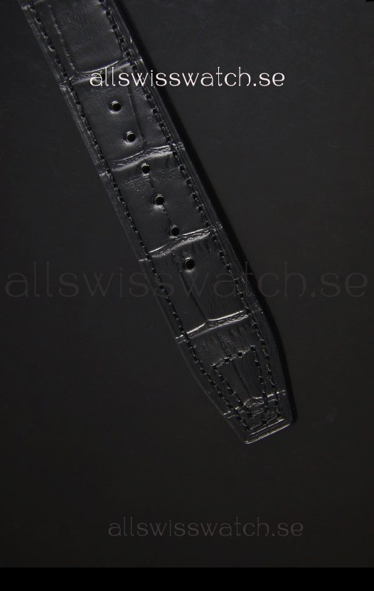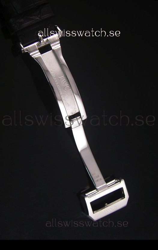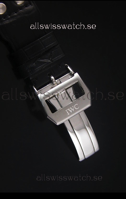 Genuine Black Leather Strap with IWC Markings and Engravings with Tang Stainless Steel Clasp