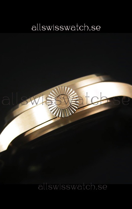 18K Rose Gold Plating on 316L Stainless Steel Case with Solid Case Back. Polished Stainless Steel Bezel