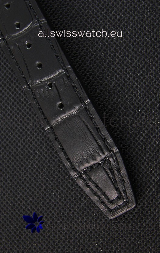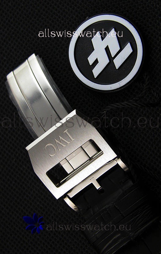 Black Crocodile Embossed Leather Strap with Stainless Steel Clasps complete with IWC Markings and Engravings