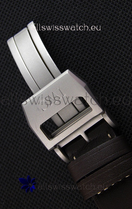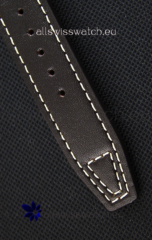 High Quality Dark Brown Leather Strap with Stainless Steel Clasps complete with IWC Markings and Engravings