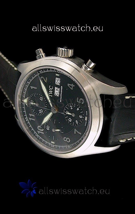 IWC Der Flieger Chronograph Swiss Replica Watch in Black Dial