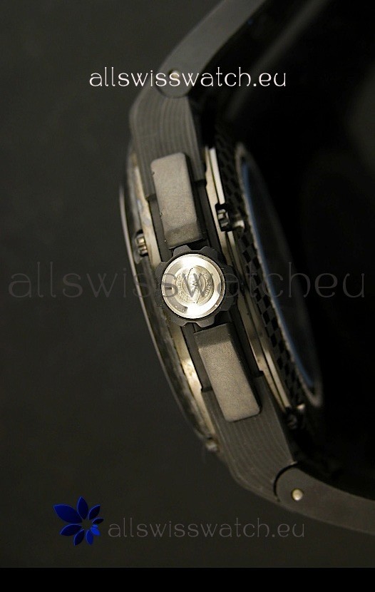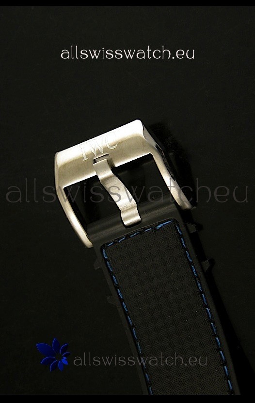 Genuine Carbon Designed Rubber Strap with Double Folding Clasp stamped with IWC Markings and Engravings exactly like the Authentic