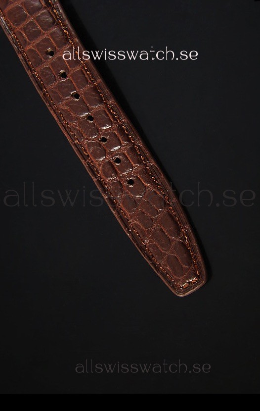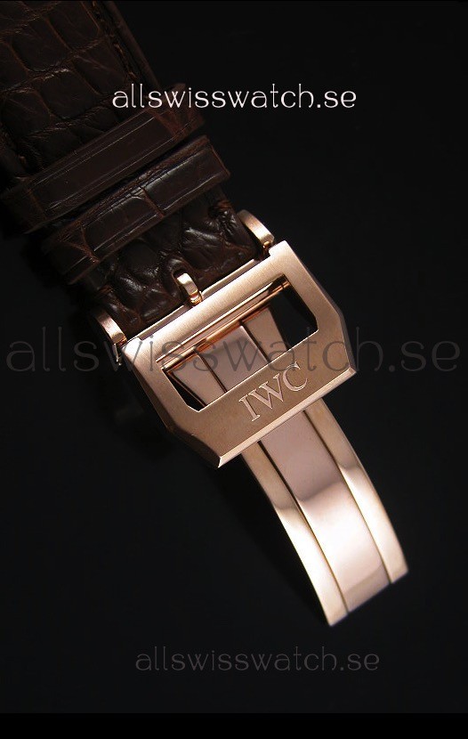 Genuine Brown Leather Strap with IWC Markings and Engravings with Tang 18K Rose Gold Plated Steel Buckle