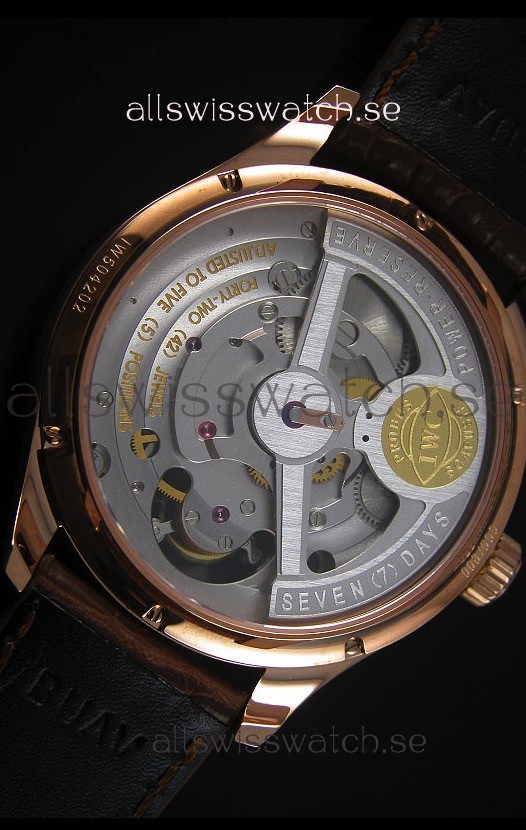 18K Pink Gold Plating on 316L Polished Solid Stainless Steel Case with IWC Markings and Engravings