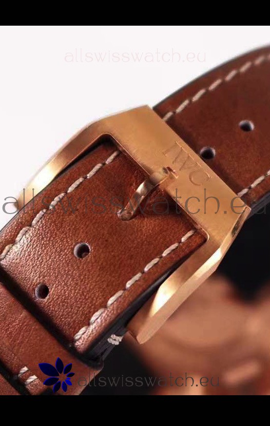 Genuine Leather Strap with Rose Gold Plated Tang Buckle complete with IWC Markings and Engravings