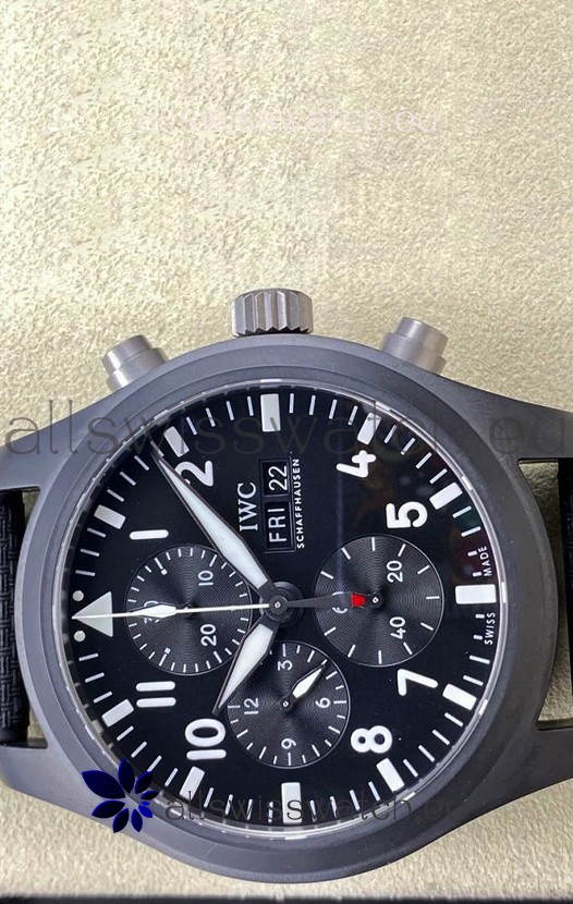 You're reviewing: IWC Pilot's Chronograph Top Gun Ceramic IW389101 1:1 Mirror Replica in Black Dial