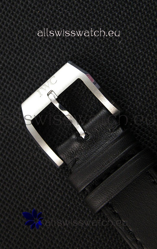 Black Calfskin Leather Strap with Stainless Steel Deployment Clasp complete with IWC Markings and Engravings