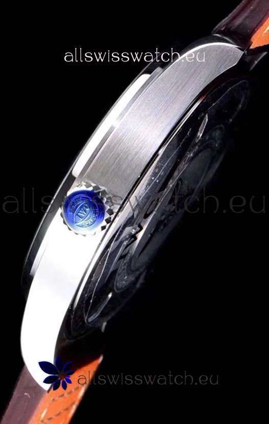 Black Calfskin Leather Strap with Stainless Steel Deployment Clasp complete with IWC Markings and Engravings