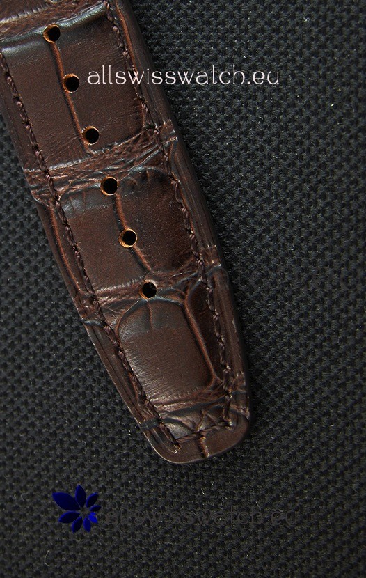 Genuine Black Crocodile Leather Strap with Stainless Steel Folding Clasp complete with IWC Markings and Engravings as per the Originals