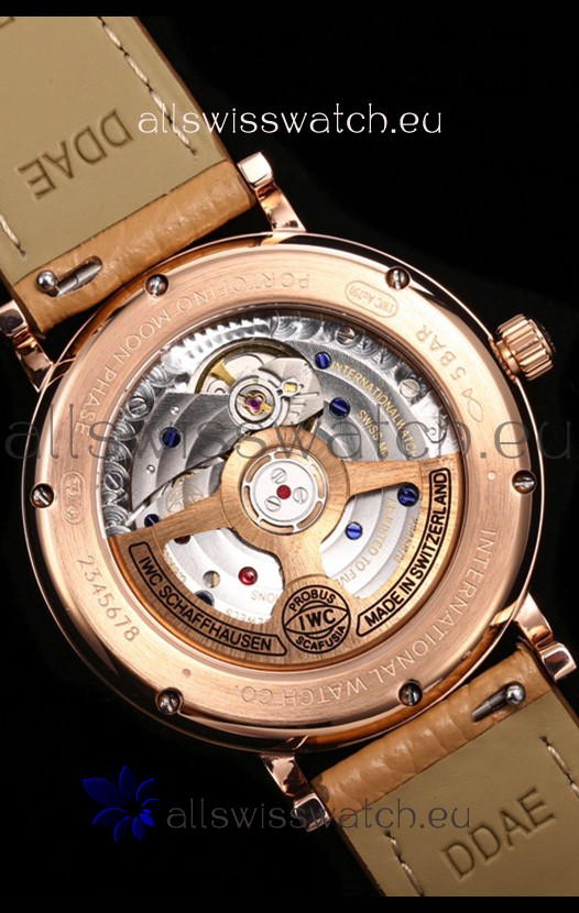 18K Rose Gold Plating on 904L Polished Solid Stainless Steel Case with IWC Markings and Engravings