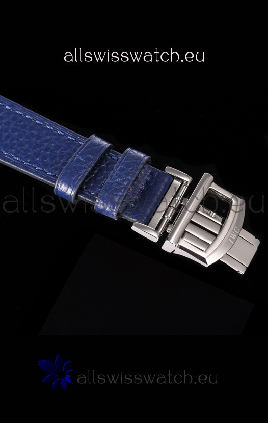 Genuine Blue Leather Strap with IWC Markings and Engravings with IWC Signature Fold Clasps