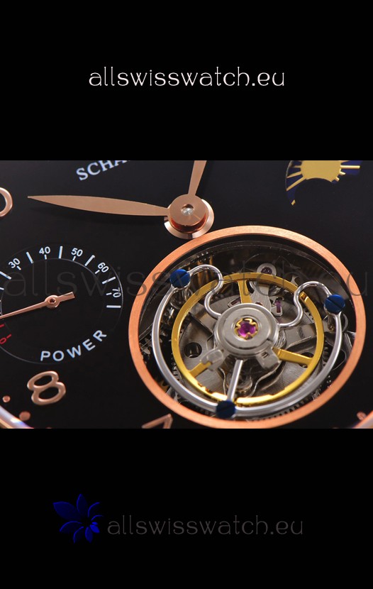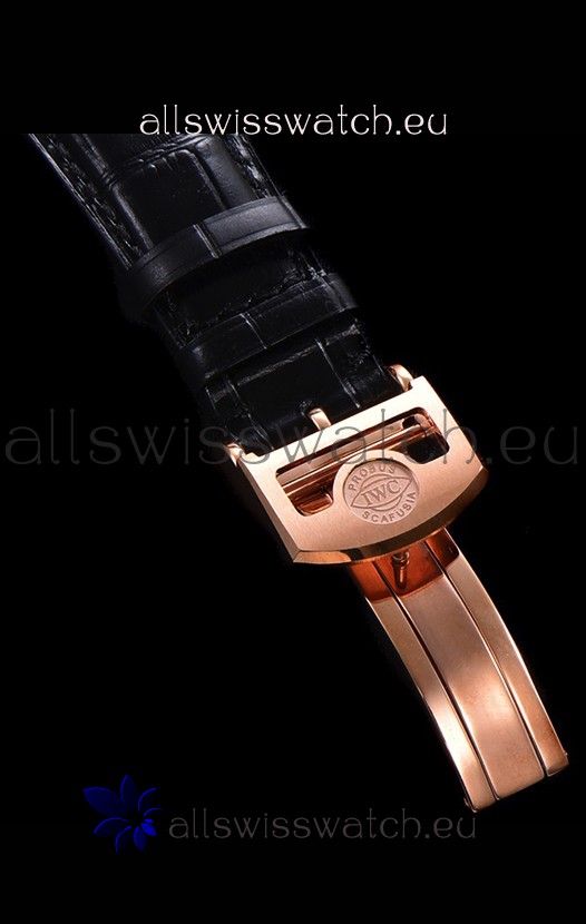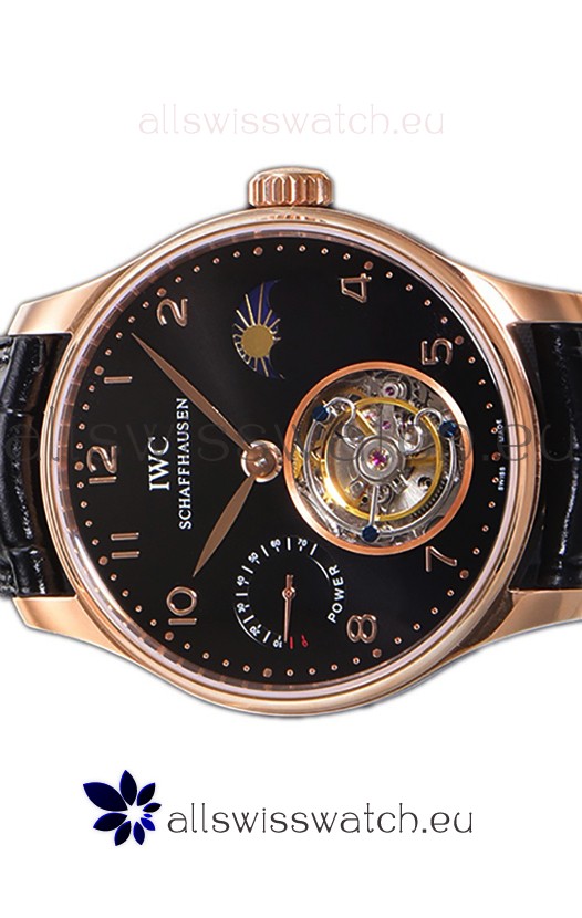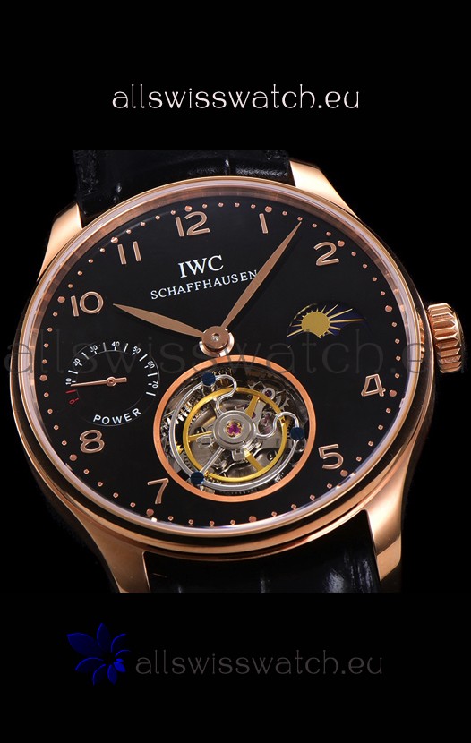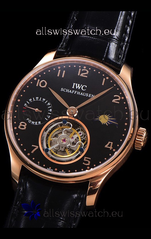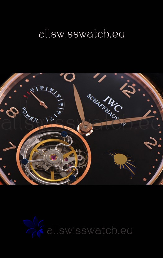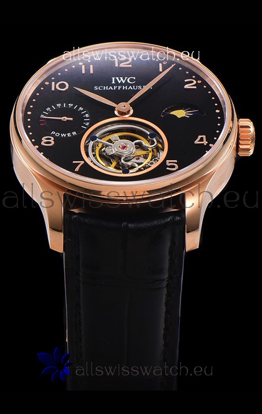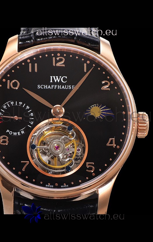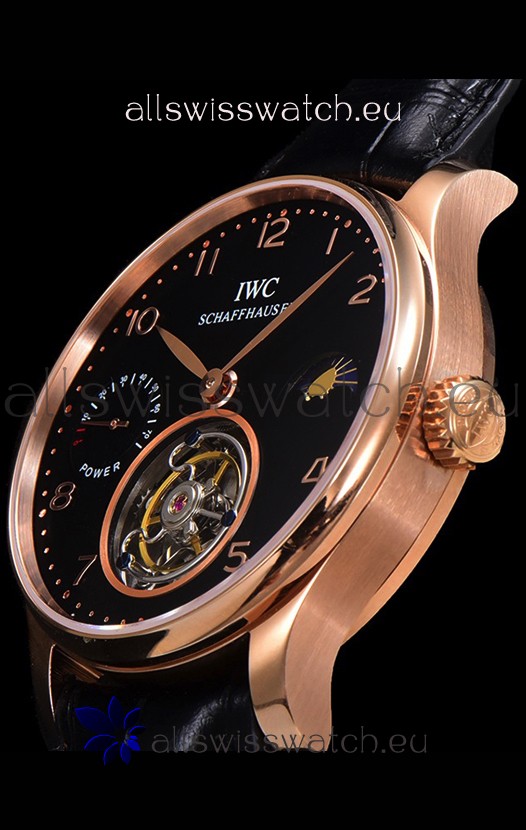 IWC Portugese Hand-Wound Genuine Tourbillon Black Dial Rose Gold Casing Swiss Replica Watch